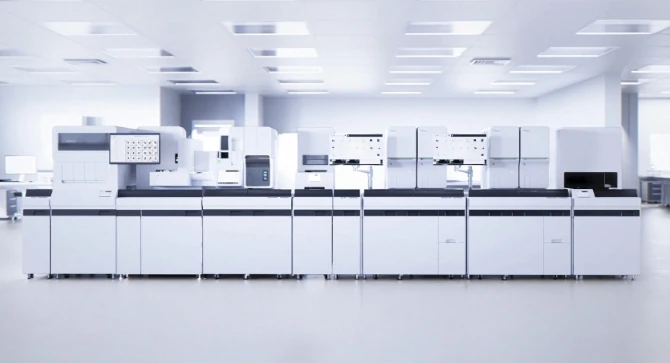 ⾎液や尿などを採取して調べる検体検査。シスメックス創⽴以来の中核事業です。