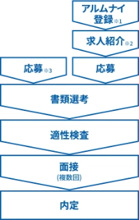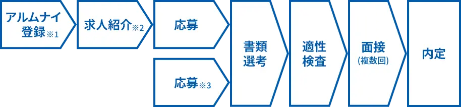 応募(アルムナイ登録)から選考の流れをご紹介します。