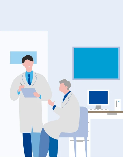 検査データが医師に届きます。機器の進化によってより詳細な分析を⾏えるようになり、診断に役⽴つ情報なども加えた報告が⾏われます。