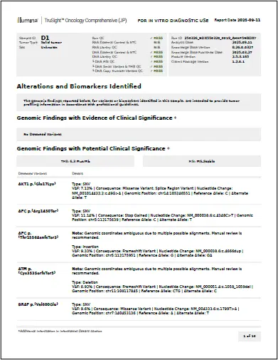 医療機器であるイルミナ株式会社の次世代シーケンサーNextSeq™ 550Dxシステムとあわせて使用し、機器よりTruSight™ Oncology Comprehensive パネルシステムの解析レポートが直接出力されます。