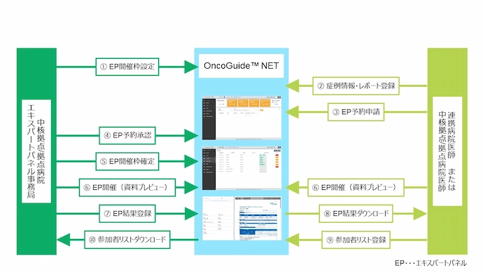 OncoGuide™ NET(エキスパートパネル支援機能)上でエキスパートパネルの開催枠の設定、予約管理、開催案内発信を行うことが可能です。