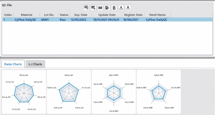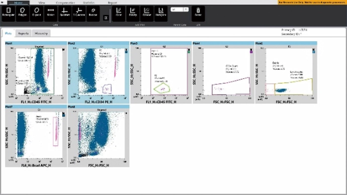 3つのレーザー(405nm、488nm、638nm)と前方散乱光(FSC)、側方散乱光(SSC)を搭載した10カラーモデルとなります。 マルチカラーにより少ないサンプル数で豊富な情報を得ることができます。