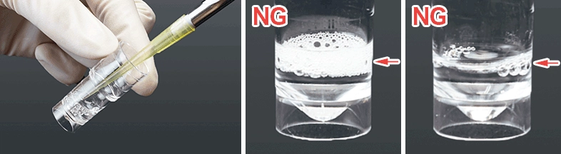 試料に泡が含まれていると、測定が正常に行われないことがあります。